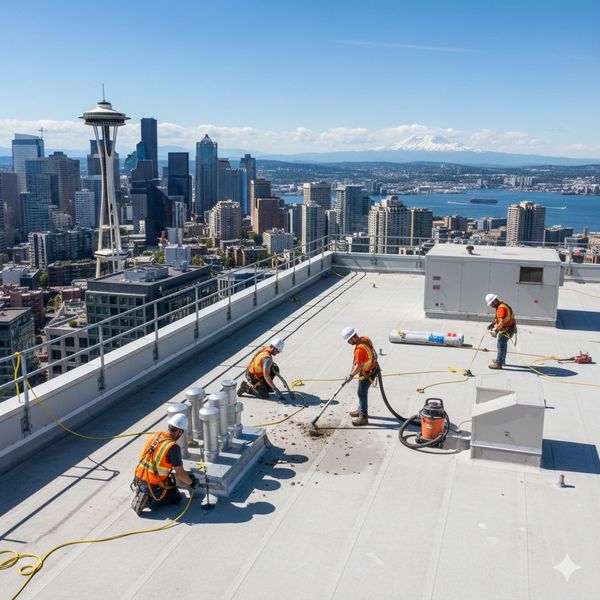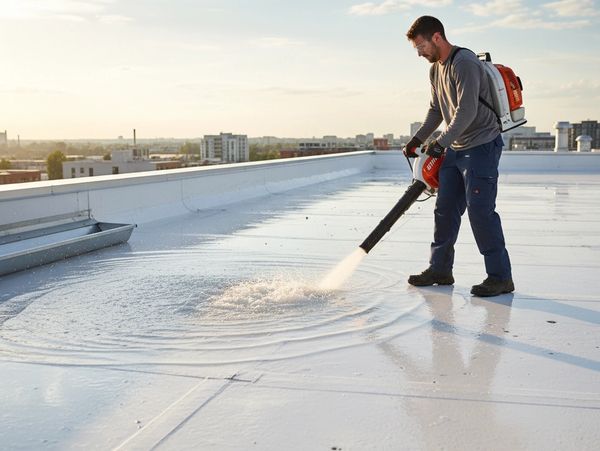 With water controlled, the surface becomes workable. You can now properly clean and repair the roof — even during rain.